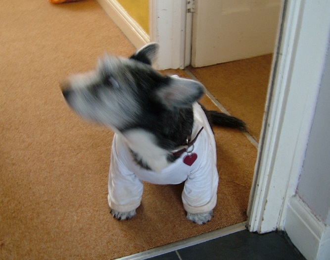me looking silly in this T shirt?!!" (Look how dirty the cuffs are!)